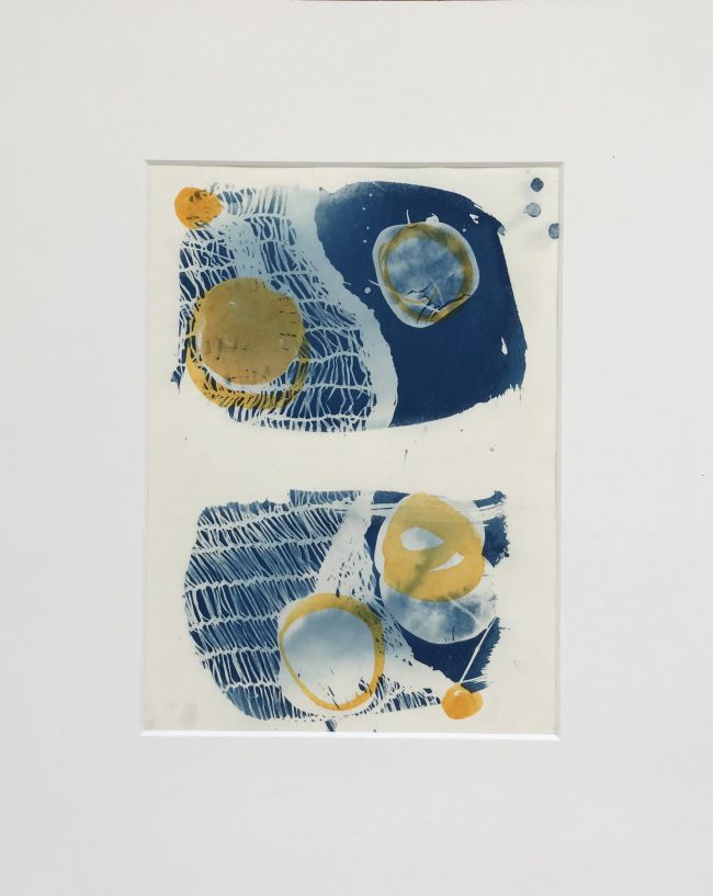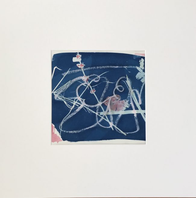 Ein weiteres Experiment mit neuem Material. Die Werke sind teilweise über einen längere Zeitraum gewachsen. Das hat eine eigene und interessante Dynamik. Neu dazugekommen sind Cyanotyie Bilder.